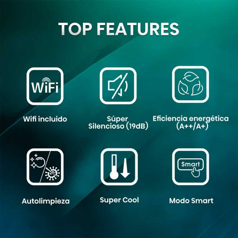 El aire acondicionado Hisense KC50XS1G, con una capacidad de 4320 frigorías en frío y 4838 Kcal en modo bomba de calor, combina eficiencia energética y confort, con clasificación A++ en modo frío y A+ en calor. Cuenta con pantalla LED en el panel frontal y mando a distancia inalámbrico con pantalla LCD. Ofrece funciones inteligentes como temporizador de 24 horas, operación sueño, modo silencioso y control del ventilador con 3 velocidades y opción automática. Sus persianas verticales oscilantes, reinicio automático y super función para enfriamiento rápido garantizan un funcionamiento versátil. Además, incluye panel y filtro lavables para un mantenimiento sencillo, y permite refrigeración incluso a baja temperatura ambiente. Su sistema de drenaje de 2 vías (izquierda o derecha) facilita una instalación flexible. Este aire acondicionado de Hisense es perfecto para estancias grandes como salones.