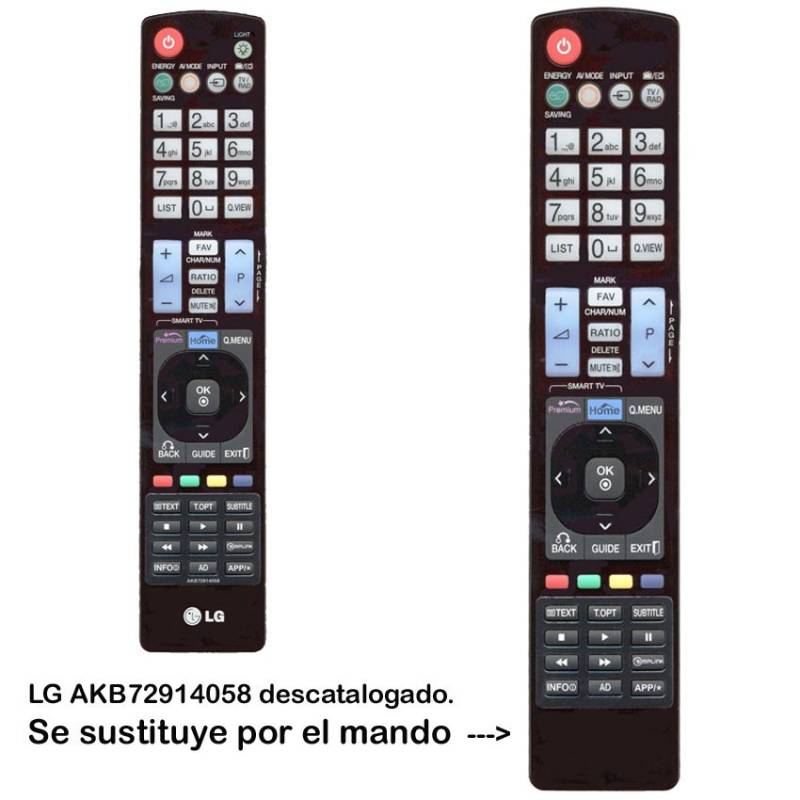 El mando que se envía es el que parece a ala derecha de la imagen y sustituye al LG AKB72914058 en todas las funciones