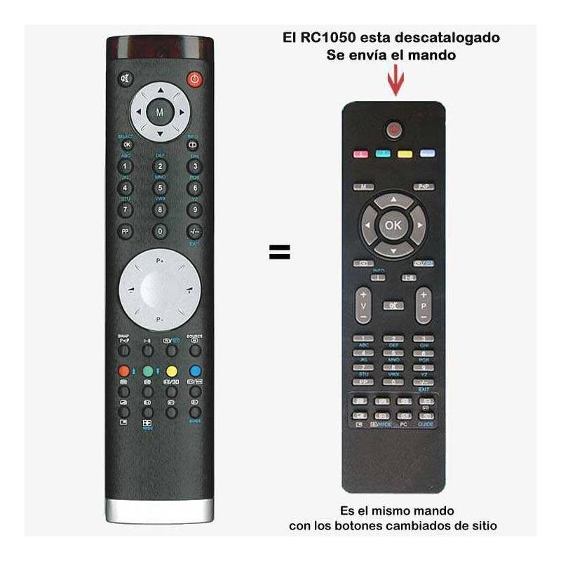 Repuesto sustituto de RC1050 aunque la forma es distinta, el mando es el mismo con los botones en diferente posición. Hace todas las funciones de la televisión.